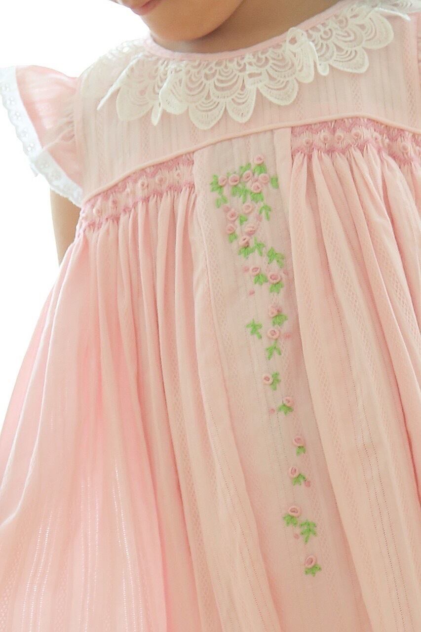 縦ラインの美しい刺繍が目を惹くワンピです。